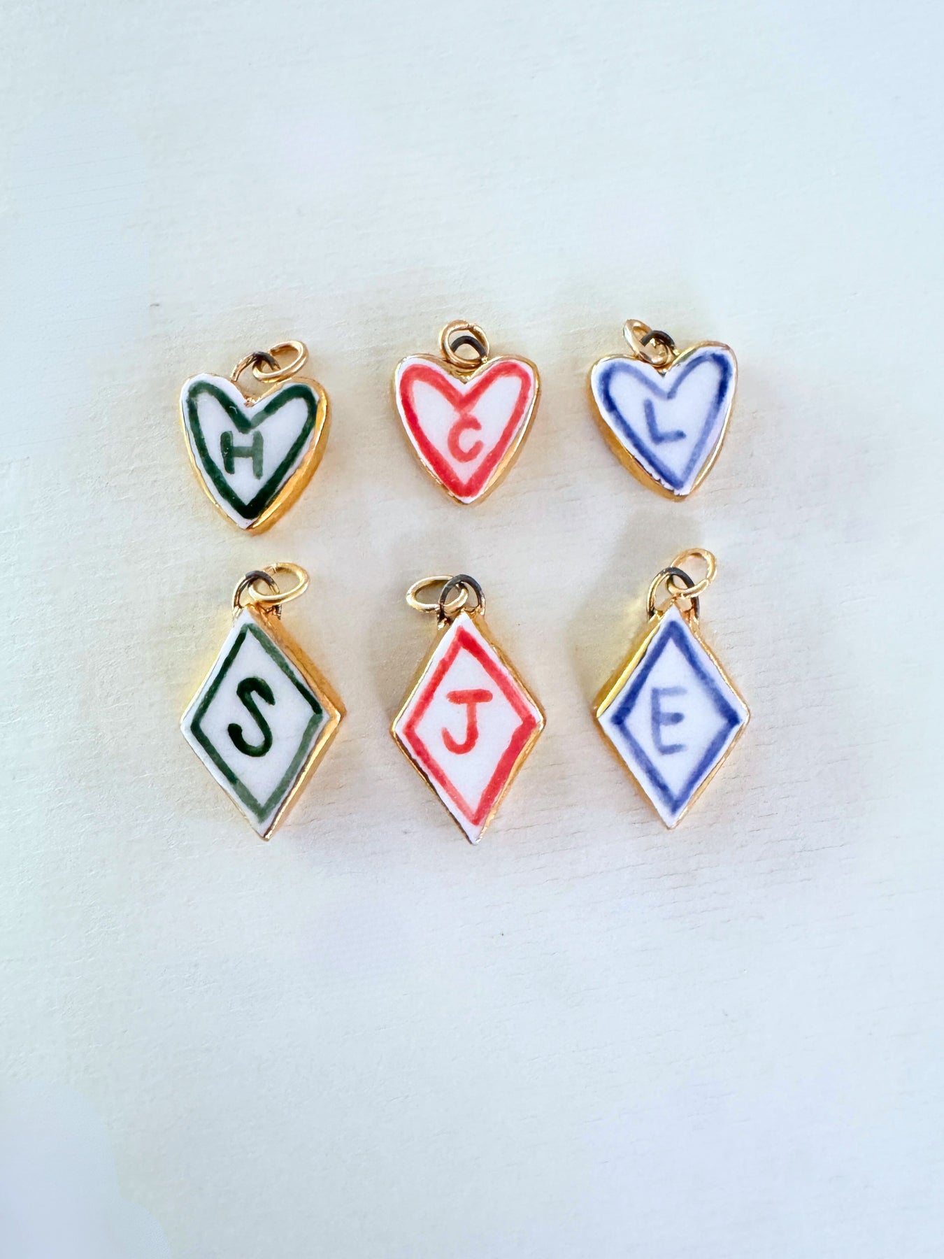 Our ceramic necklace pendants are all made by hand, by us in our studio in Hertfordshire from earthenware clay, and include a third firing of gold or platinum sealing the gold onto the earrings, ensuring the gold will not fade or tarnish.