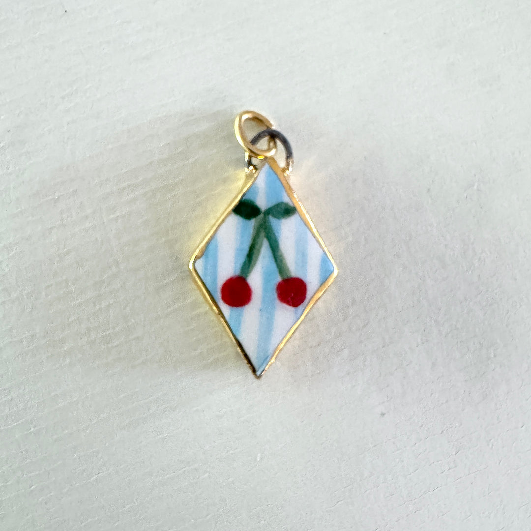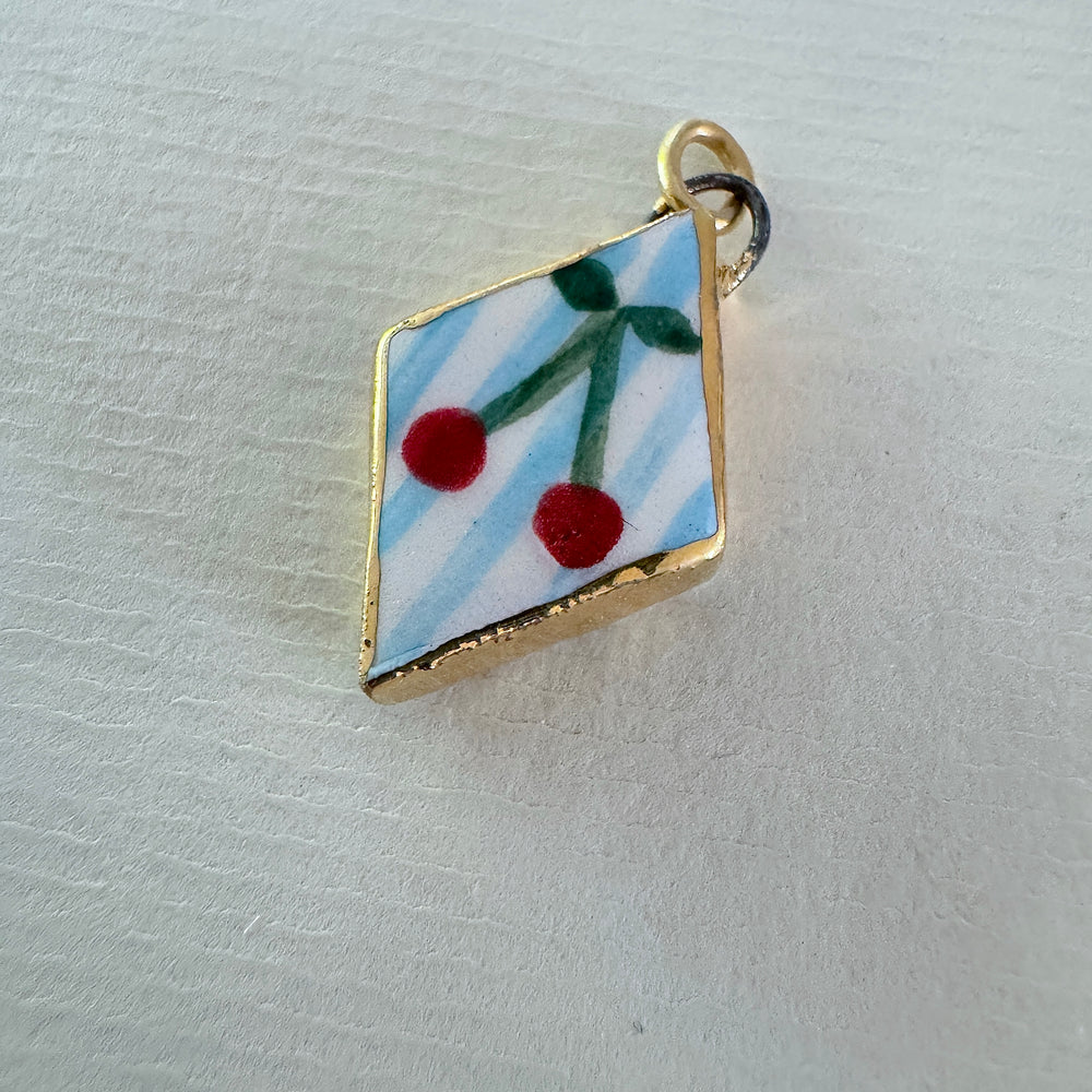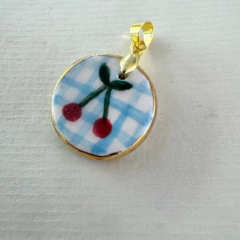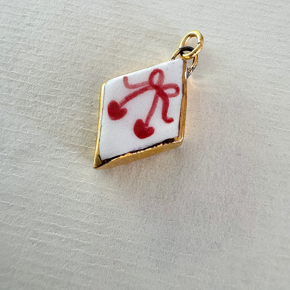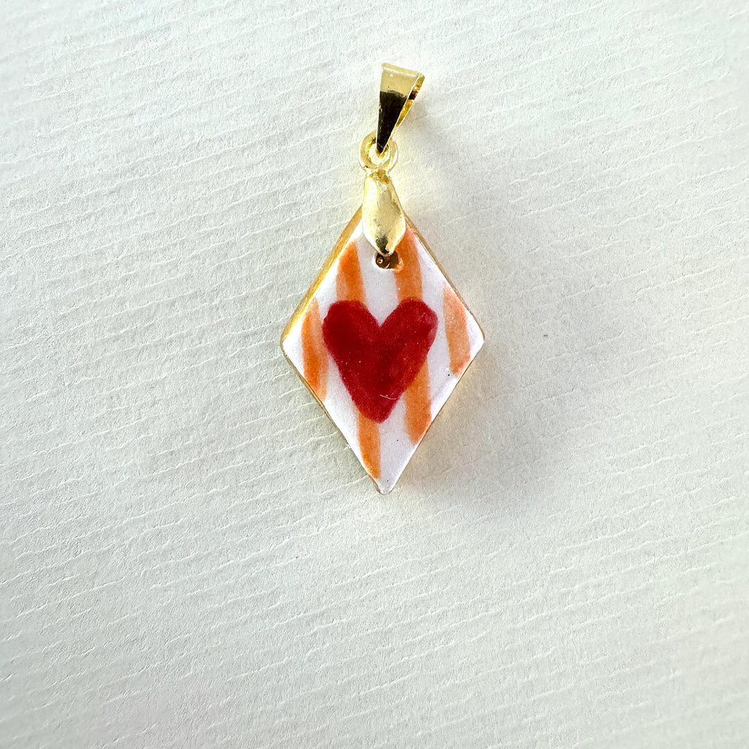 Black and White Spotty Ceramic Heart Charm with Hoops