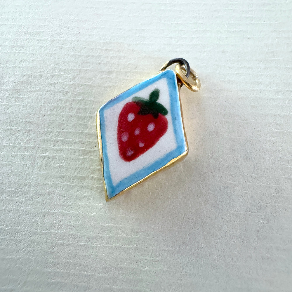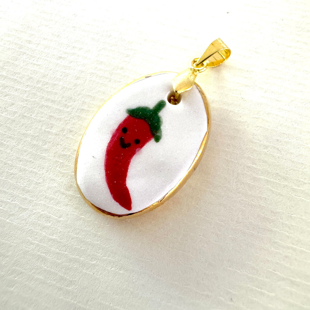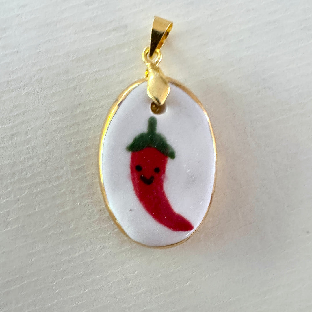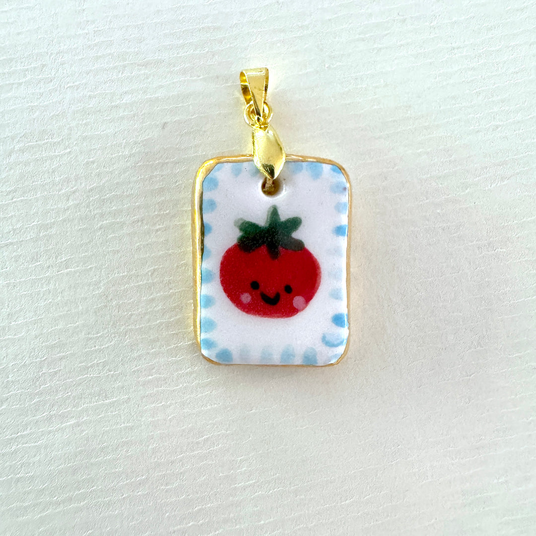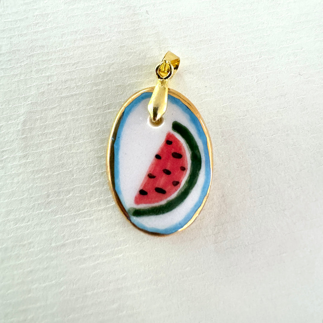 Black and White Spotty Ceramic Heart Charm with Hoops